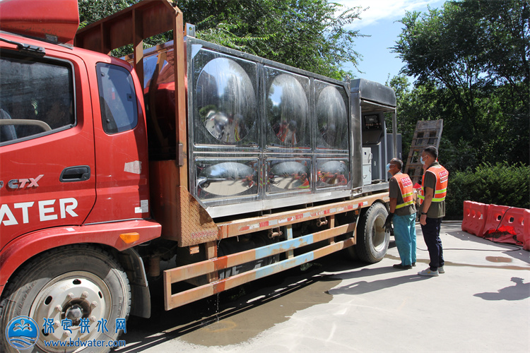 8月25日,在天威东路一处维修现场,市供水有限公司首次成功使用移动式应急加压供水设备,完成DN300管道的阀门更换,期间使附近医院的正常用水得到保障。