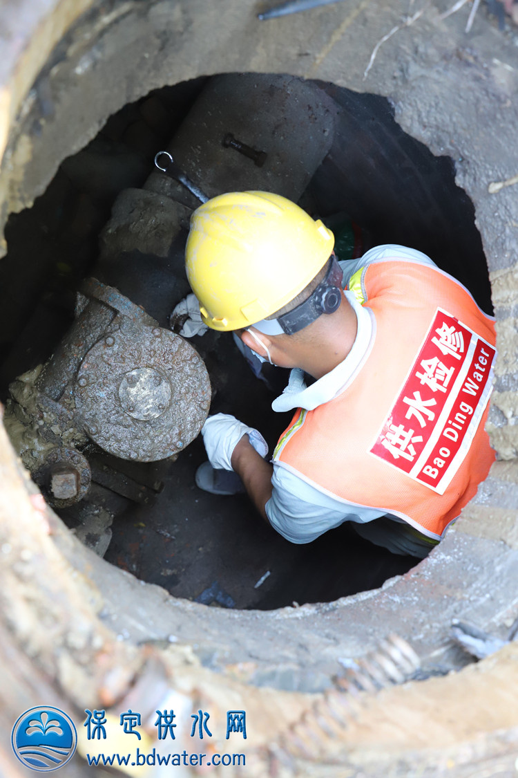 “这个阀门使用时间比较长了,开关不严有些失灵。”供水公司管网维修人员刘冀峰边拆卸螺丝边说道。“我们得抓紧时间,中午不休息把它干完。”维修人员克服时间紧、井内空间狭小等困难,通过拆卸、抽水、断管、安装等工序,于下午14时,圆满完成维修任务,恢复正常通水。