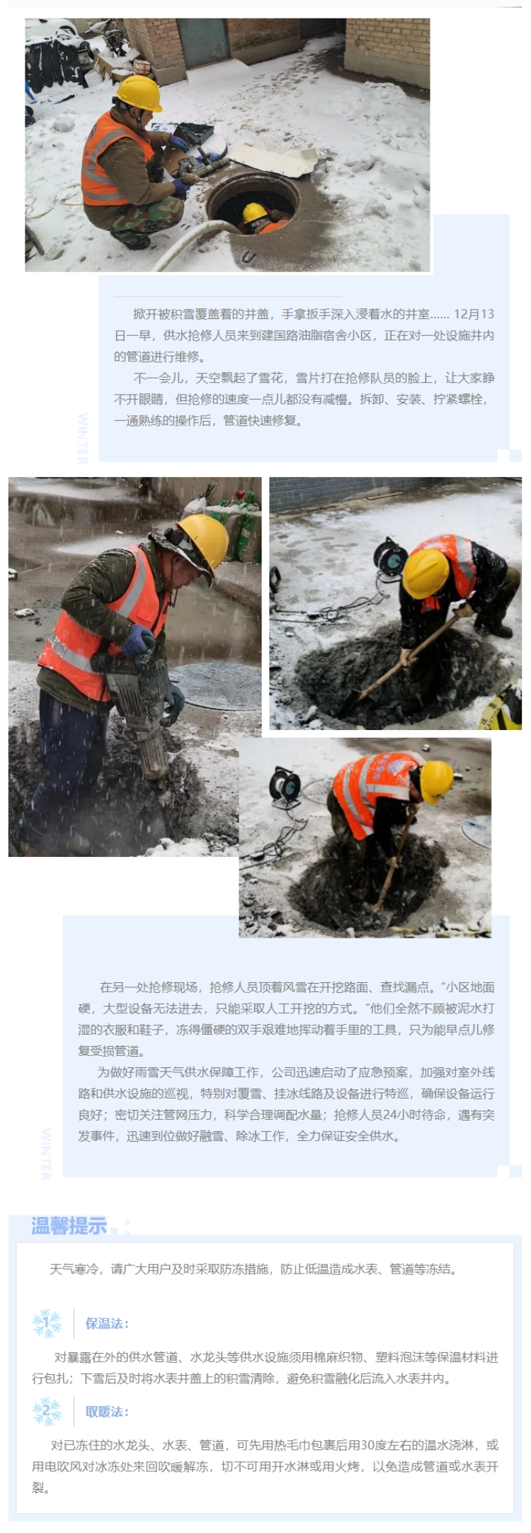 冒雪抢修 奋战在供水一线