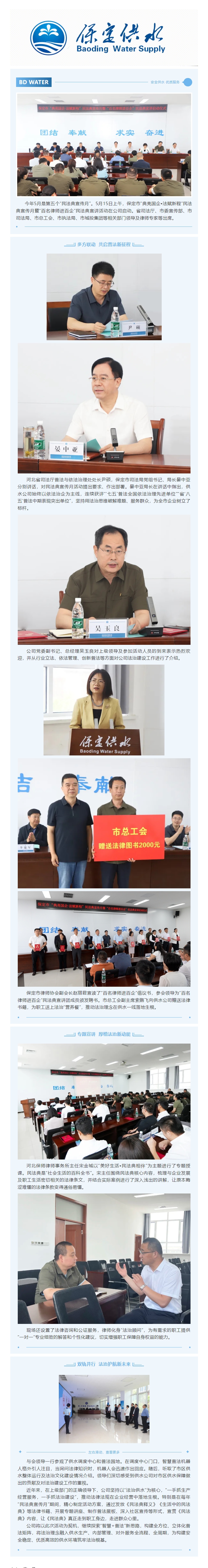 “法”润企心 “典”亮供水 保定市民法典宣传月暨“百名律师进百企”民法典宣讲活动在公司启动