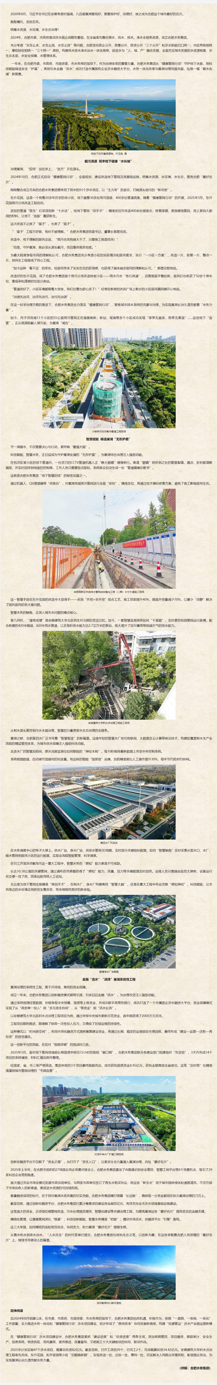 做好城市“水文章” 守护碧水安澜——合肥水务集团水务一体化改革一周年纪实