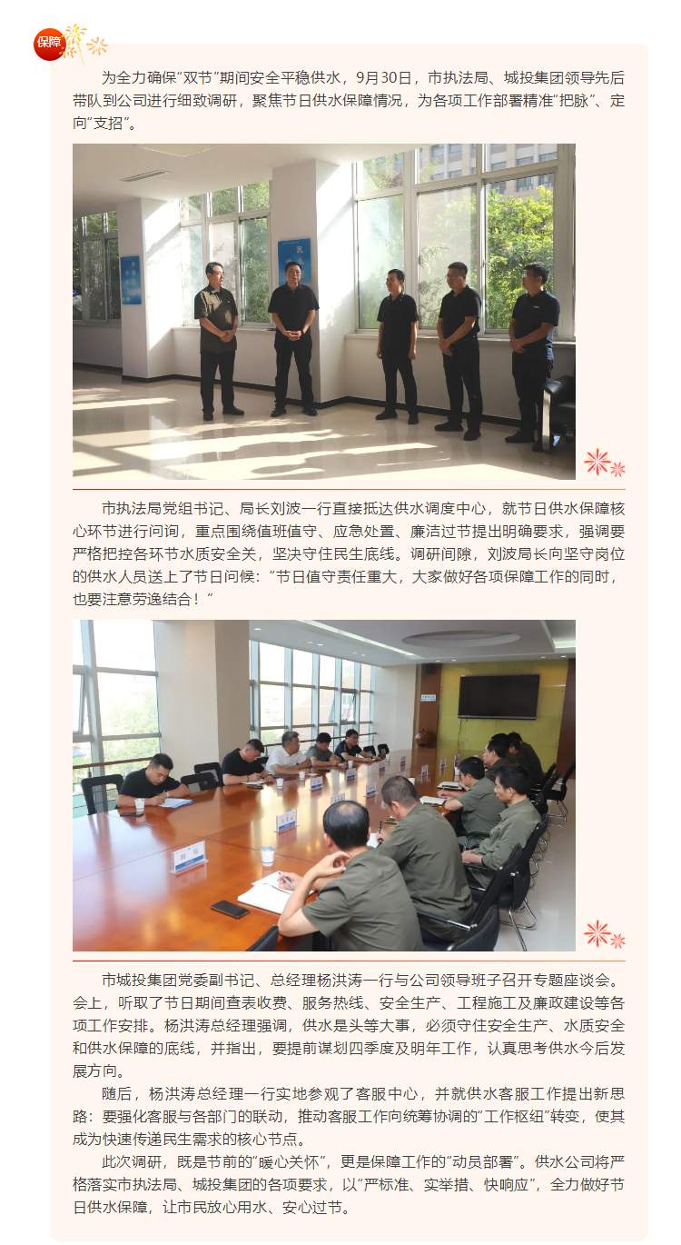 节前关怀+部署双到位!市执法局、城投集团领导调研节日期间供水保障工作
