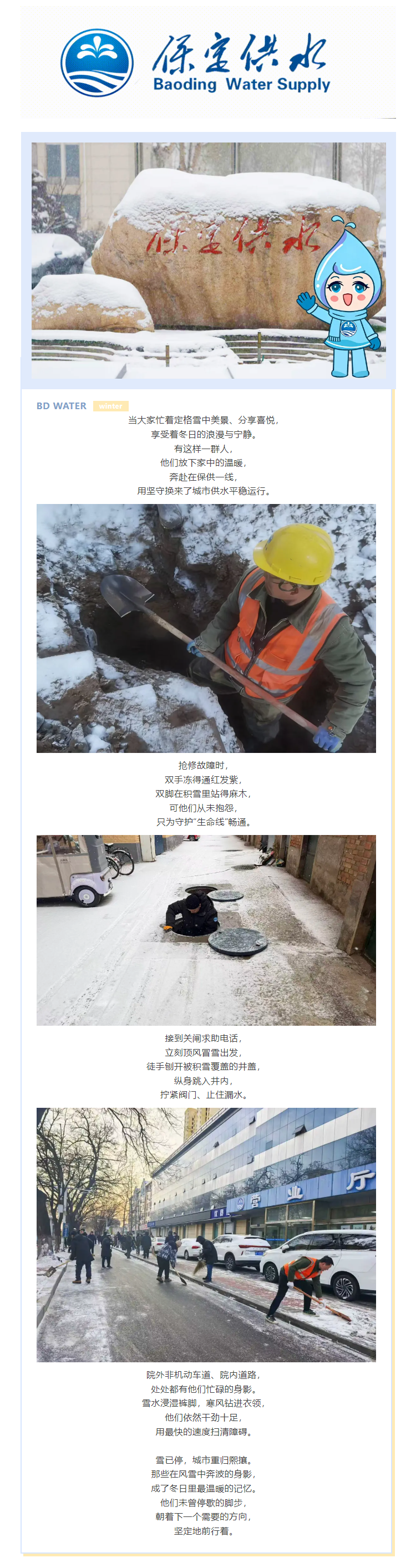 雪落无声 守护有痕 保定供水人的风雪担当