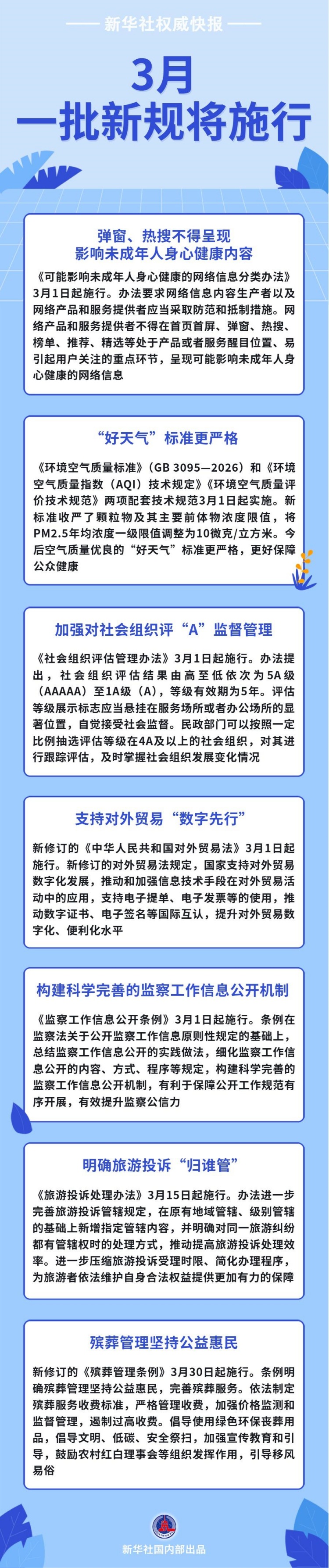 新华社权威快报 3月,一批新规将施行